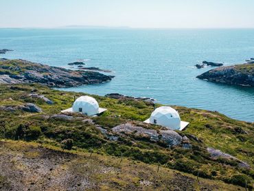 The accommodation here is as unique as the landscape — a mix of eco-cabins and geodomes each designed to frame the wild Atlantic views and bring you closer to the elements. The cabins are bright and modern, complete with kitchens and decks that open onto sweeping sea vistas. Two geodomes are tucked higher up the cliffs, cosy yet open to the horizon.